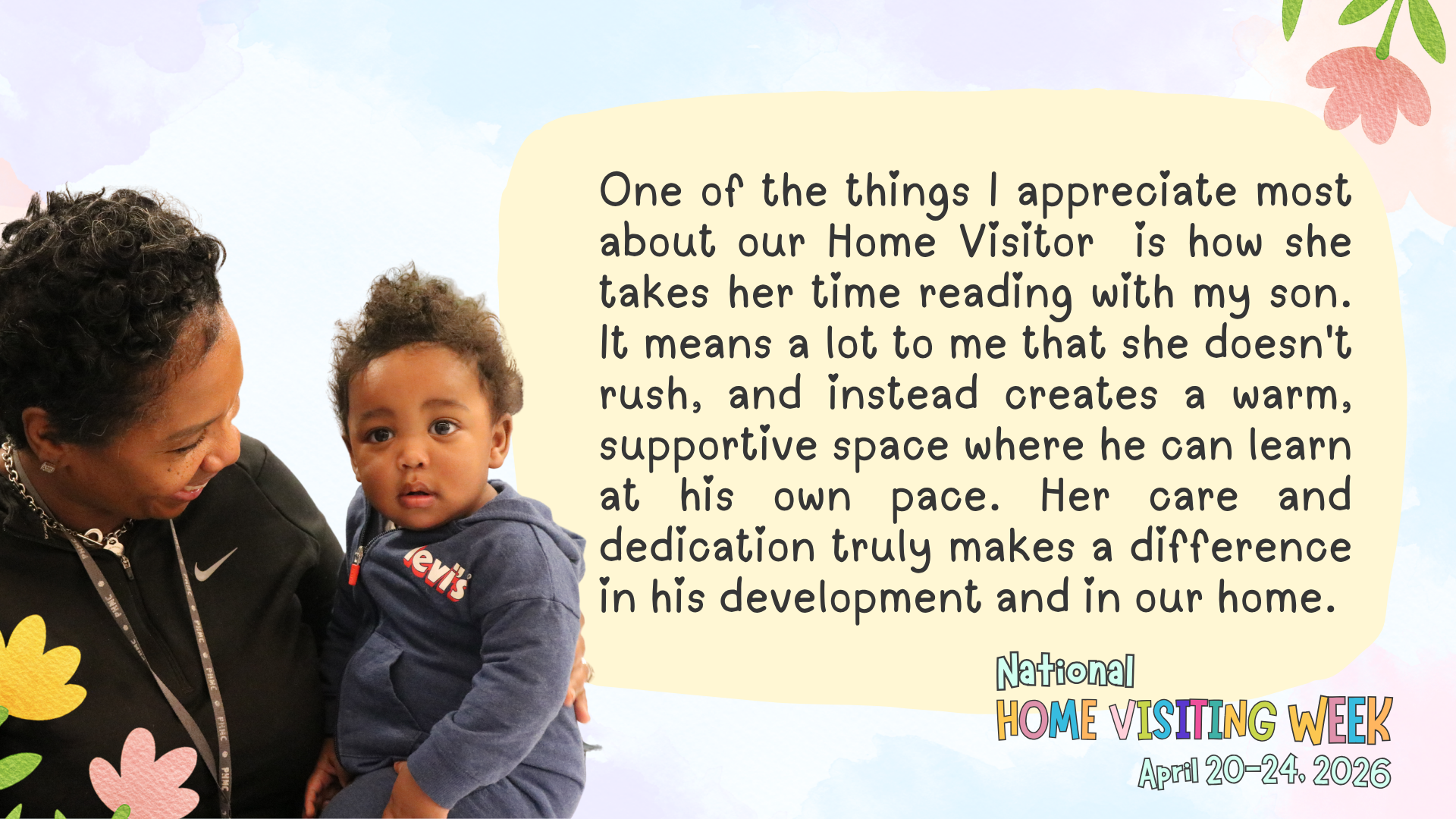 One of the things I appreciate most about our Home Visitor is how she takes her time reading with my son. It means a lot to me that she doesn't rush, and instead creates a warm, supportive space where he can learn at his own pace. Her care and dedication truly makes a difference in his development and in our home.
