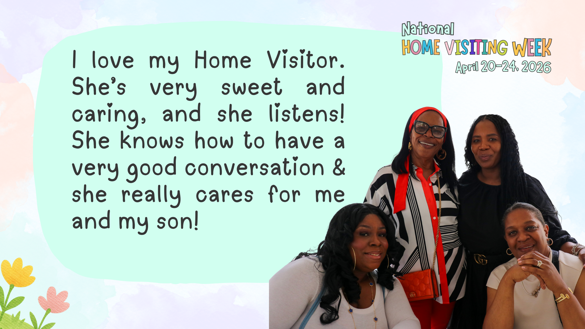 I love my Home Visitor. She’s very sweet and caring, and she listens! She knows how to have a very good conversation & she really cares for me and my son!